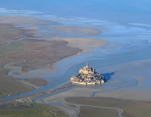 午後:モンサンミッシェル修道院観光 旅の始まりは、言わずと知れた海に浮かぶ巡礼地モン・サン・ミシェル。708年、大天使ミカエルのお告げによって造られた小聖堂から始まったこの修道院は、今も他に並ぶもののない荘厳な美しさを誇っています。モンサンミッシェル泊