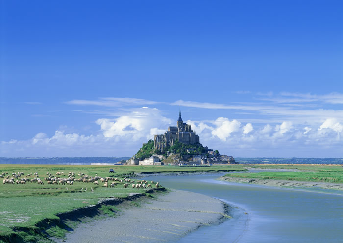 世界遺産、海に浮かぶ巡礼地モン・サン・ミシェル。708年、大天使ミカエルのお告げによって造られた小聖堂から始まったこの修道院は、今も他に並ぶもののない荘厳な美しさを誇っております。